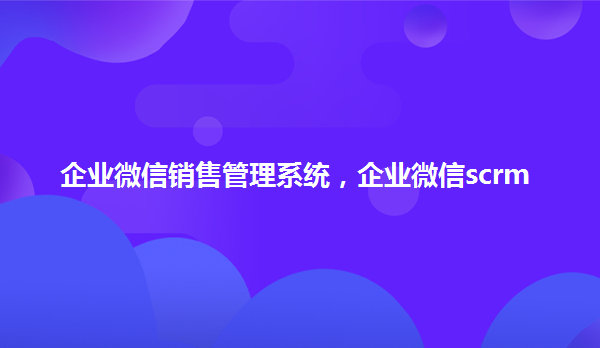 企业微信销售管理系统,企业微信scrm